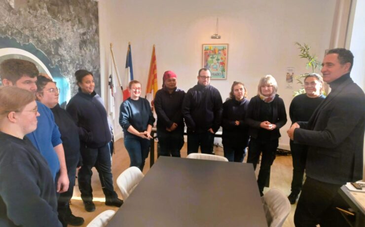 En ce début d’année, l’équipe de nettoyage des locaux de l’ESAT du Pôle Parcours Emploi Accompagné de l’Association AVENS a eu l’honneur de présenter ses vœux à Monsieur le Maire du Pradet. À l’occasion de cette rencontre, les ouvriers, accompagnés de leurs encadrants, ont remis à Monsieur le Maire une